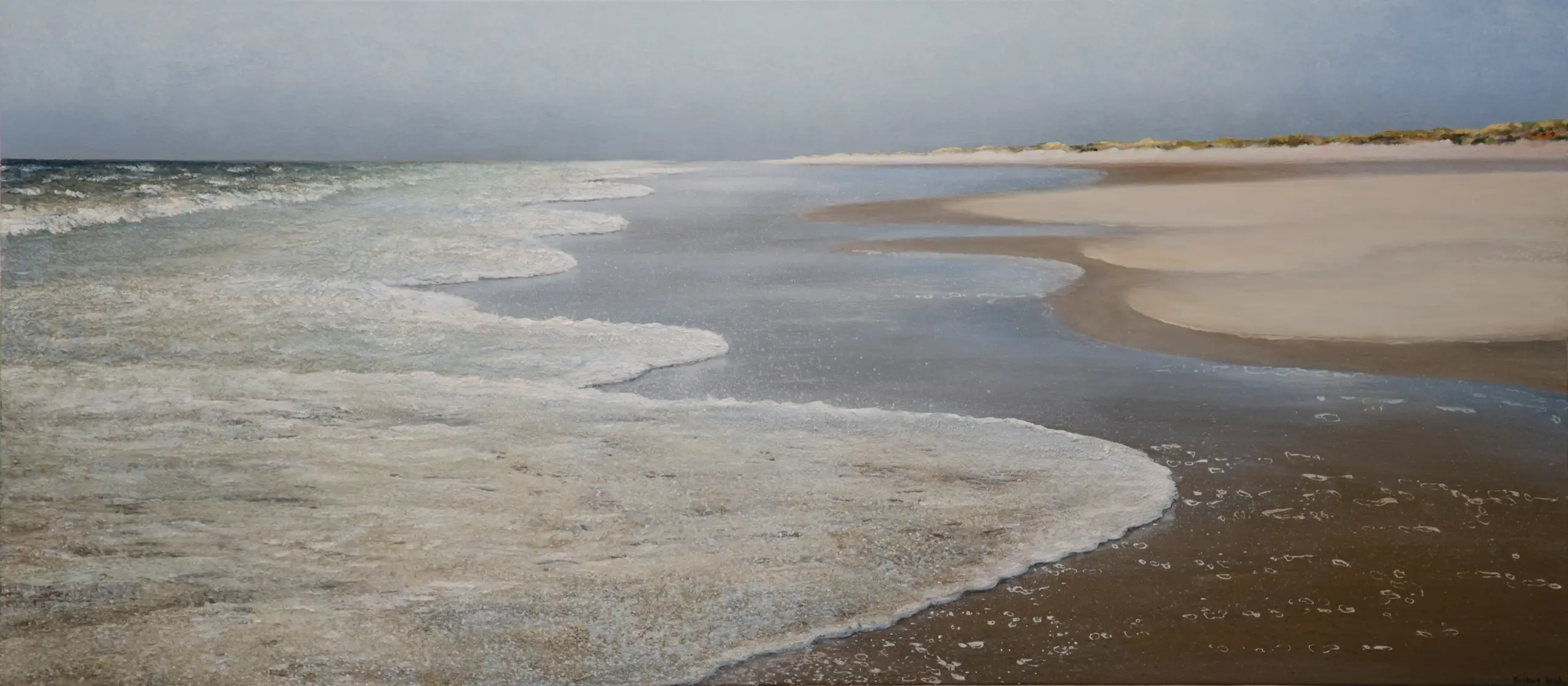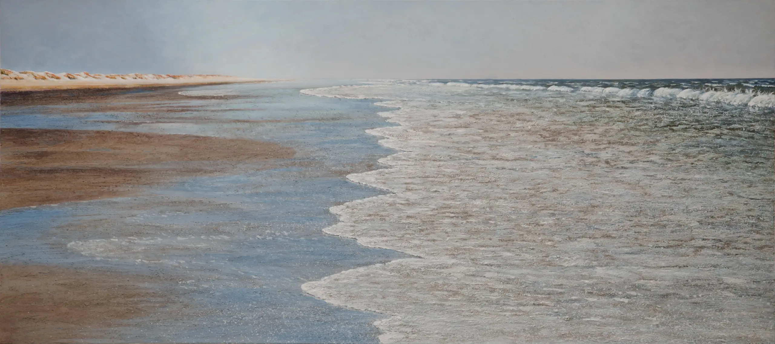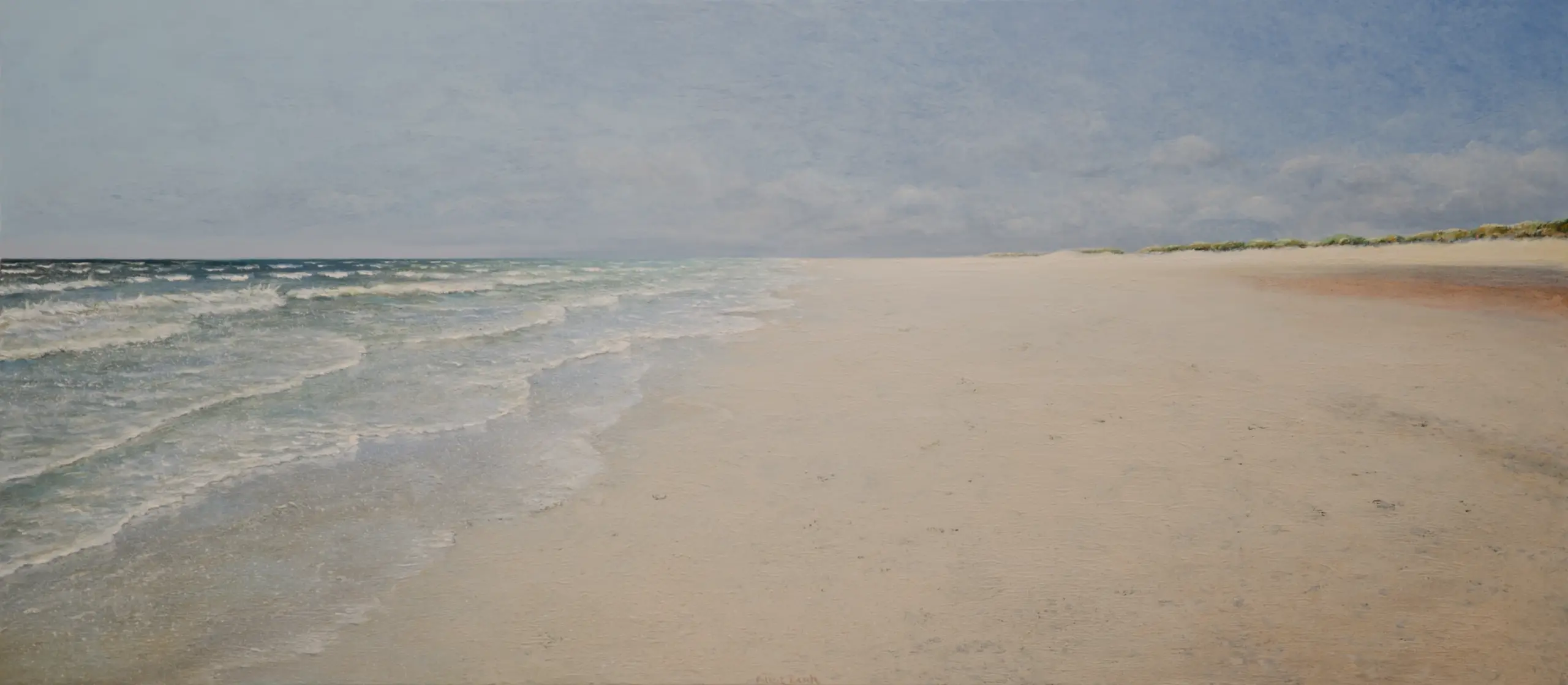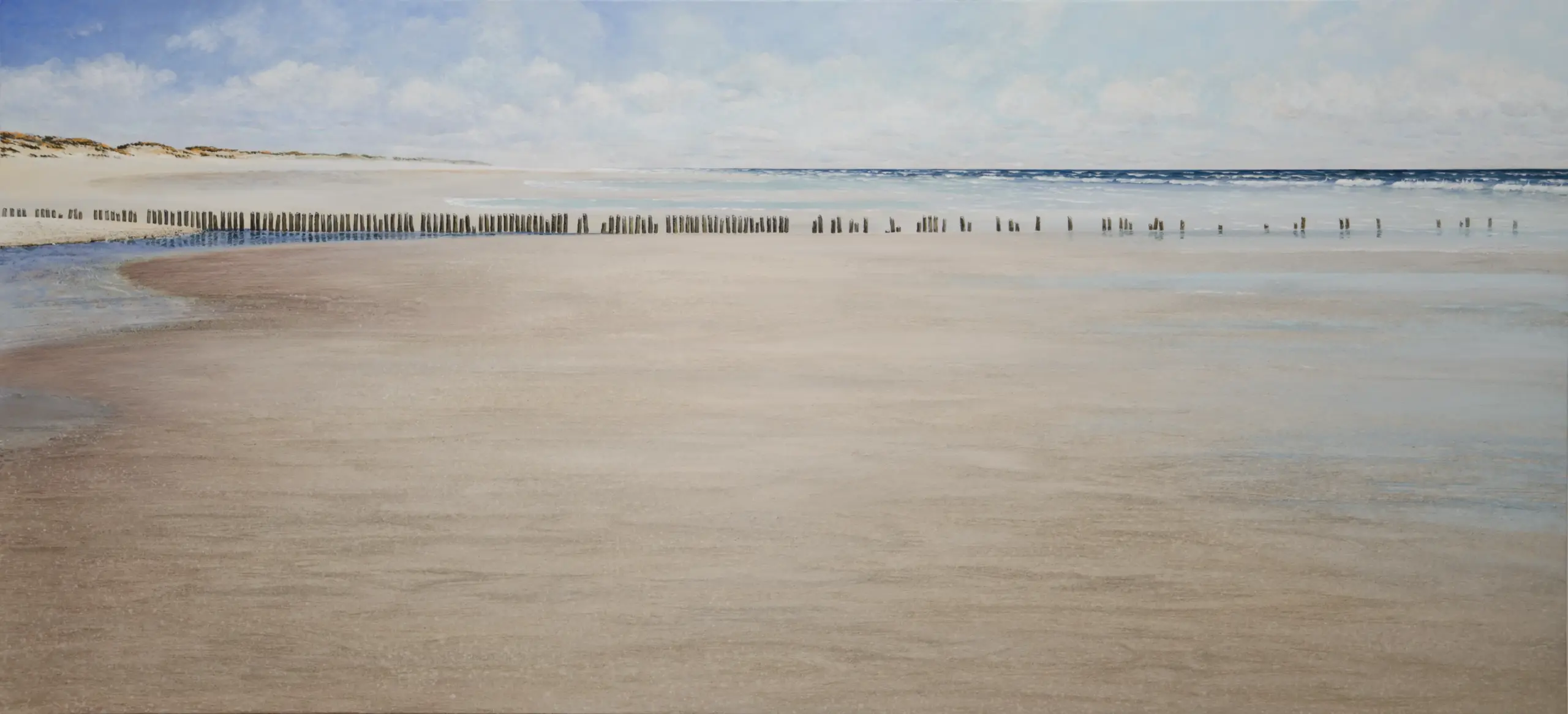 Im extremen Querformat entfalten sich Strand und Meer: eine Marina.