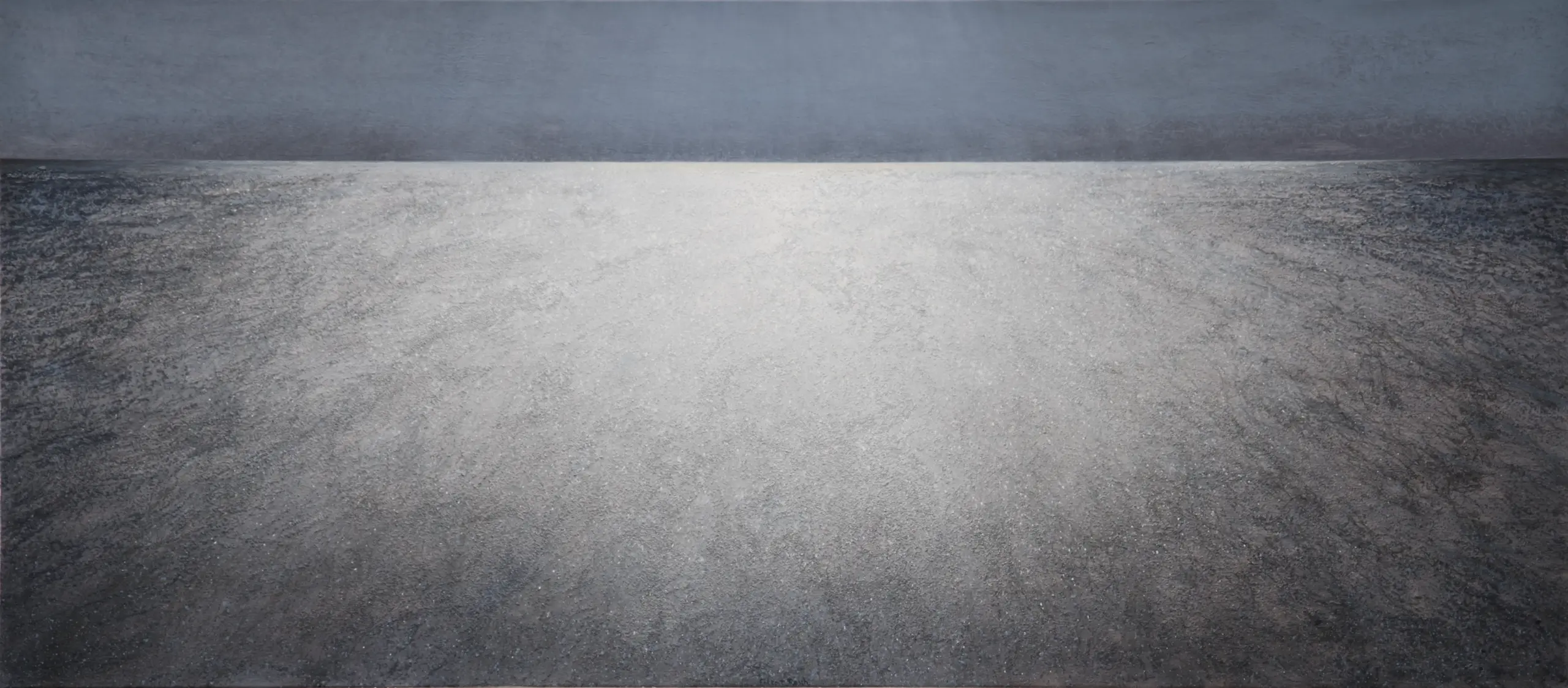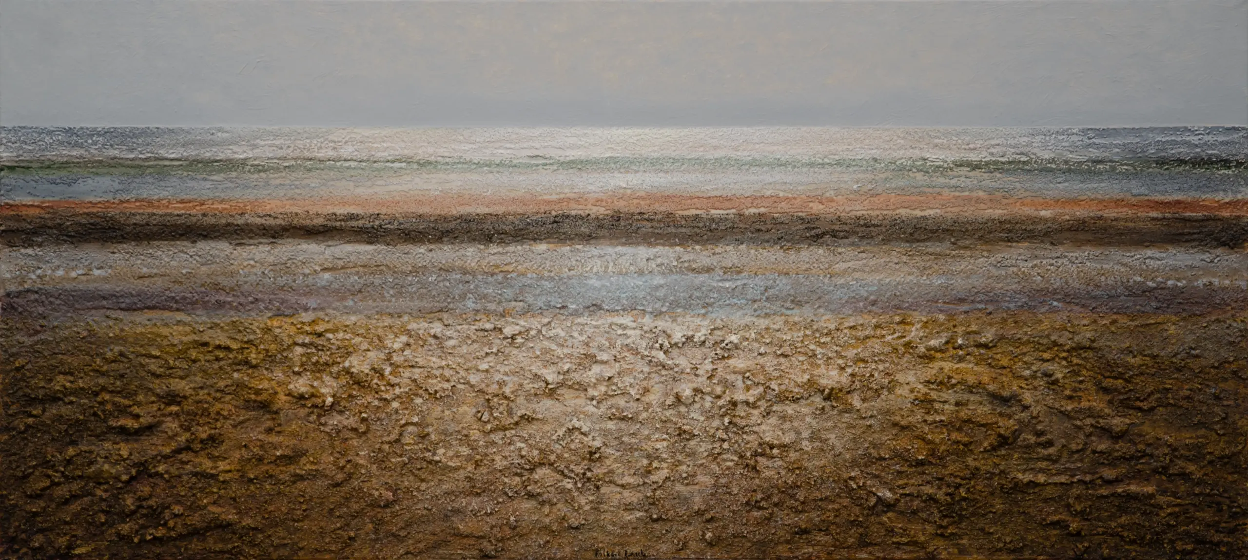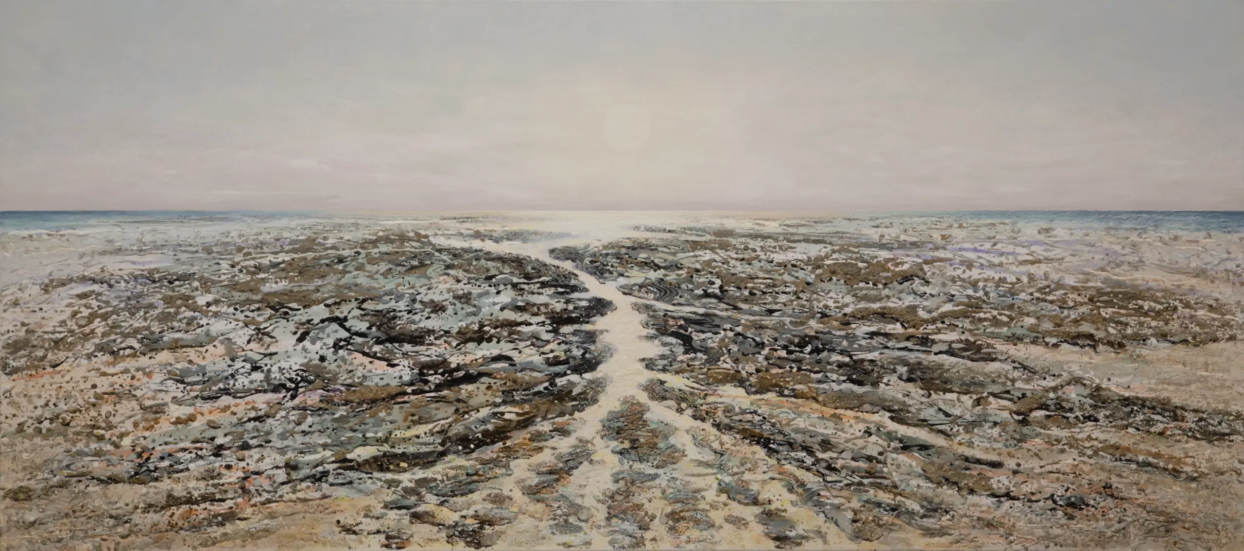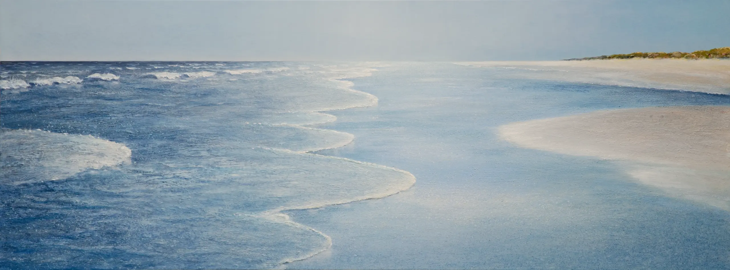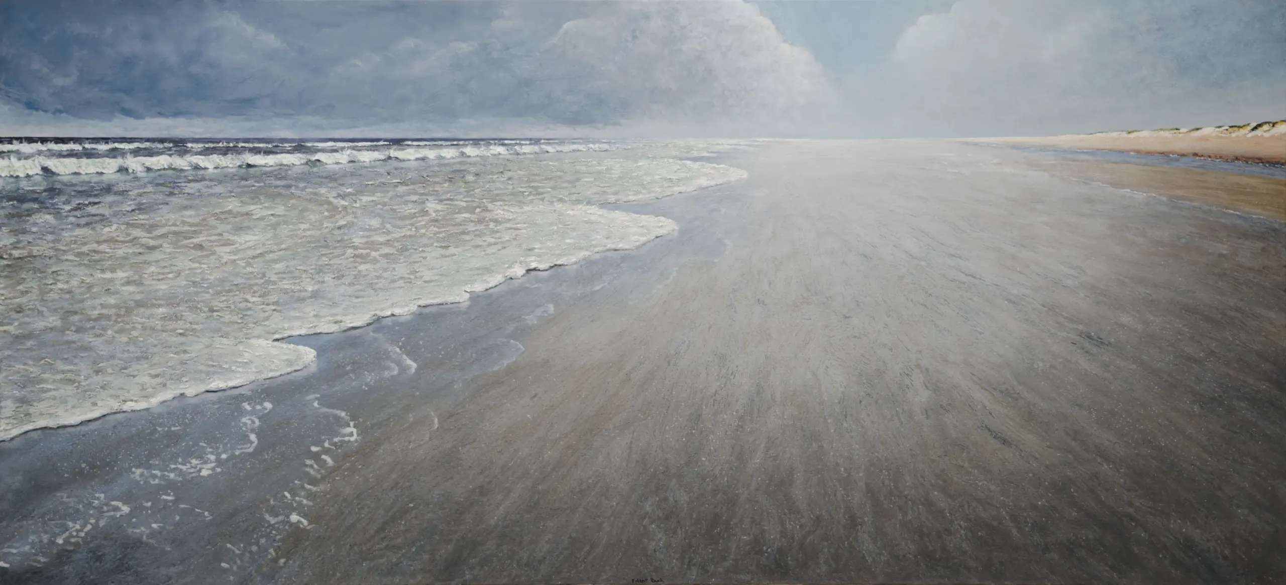 Im extremen Querformat entfalten sich Strand und Meer: eine Marina.